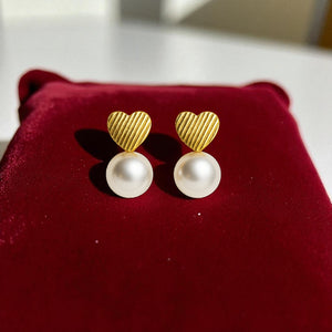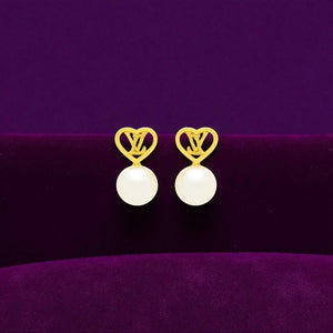 Elegant Gold-Plated Pearl Stud Earrings Set – Heart, Circle, and Designer-Inspired Styles (3 Pairs)