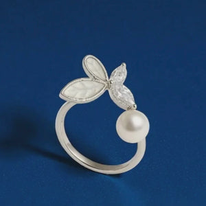 Elegant Pearl Leaf Adjustable Ring
