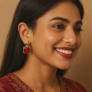 Ruby Square Drop Earrings